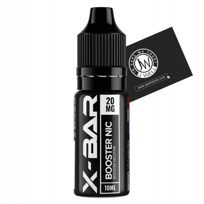 Le booster de nicotine X-Bar par J Well est une base neutre spécialement conçue pour nicotiner vos e-liquides grand format (50 ml, 100 ml, etc.) ou vos préparations DIY. Chaque flacon contient 10 ml de liquide dosé à 20 mg/ml de nicotine, avec un ratio équilibré 50/50 PG/VG, garantissant un bon équilibre entre hit et production de vapeur.